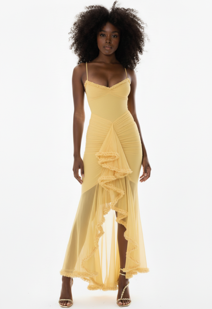 The Fianna Lemon Midi Dress blends timeless femininity with modern structure. Designed with a corset-style bodice and voluminous A-line skirt, this soft yellow piece captures vintage-inspired glamour with a fresh twist.